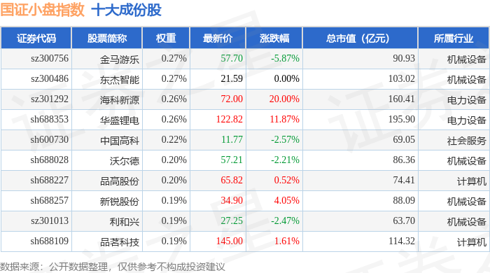 证券之星消息,12月26日,国证小盘(980202)指数报收于1785.51点,跌0.25%,成交2082.29亿元,换手率4.08%。当日该指数成份股中,上涨的有357家,标榜股份以20.01%的涨幅领涨,下跌的有1114家,倍轻松以14.68%的跌幅领跌。