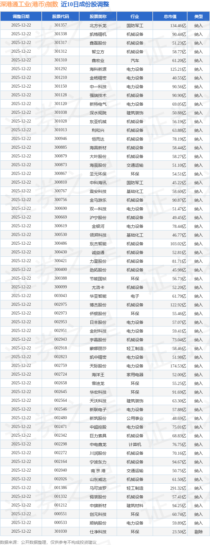 近10日内深港通工业(港币)(983018)指数成份股做了调整,新纳入了58只股票,剔除了1只股票。