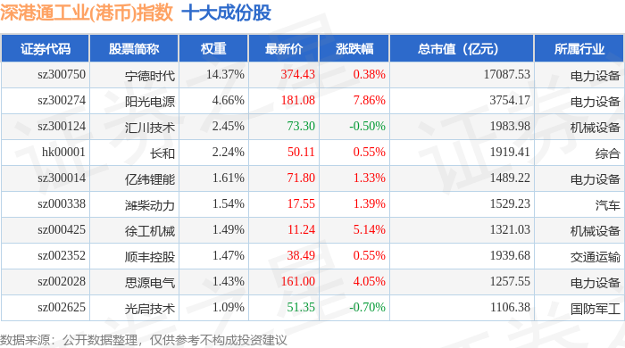 深港通工业(港币)(983018)指数十大成份股详情如下: