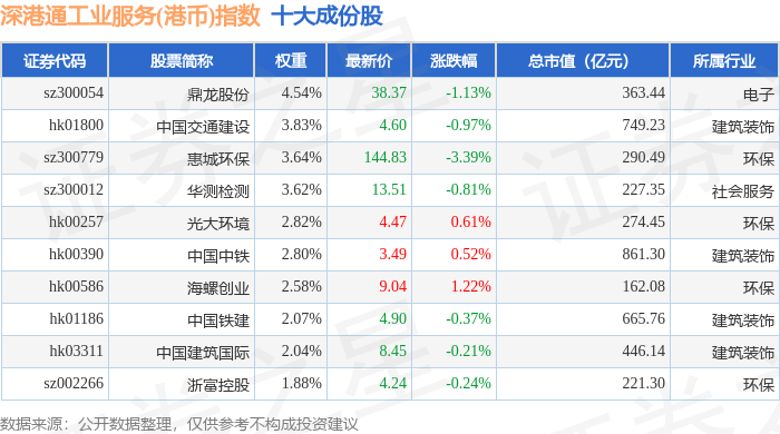 深港通工业服务(港币)(983056)指数十大成份股详情如下:
