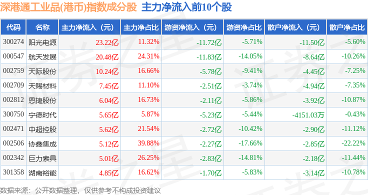 资金流向方面,深港通工业品(港币)(983070)指数成份股当日主力资金净流入合计37.56亿元,游资资金净流出合计56.0亿元,散户资金净流入合计18.44亿元。成份股资金流向详情见下表: