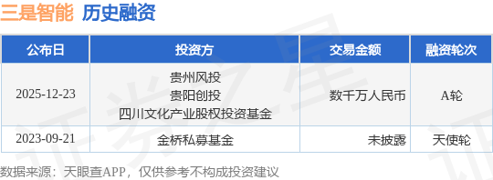 证券之星消息,根据天眼查APP于12月23日公布的信息整理,四川三是工业智能科技有限公司A轮融资,融资额数千万人民币,参与投资的机构包括贵州风投,贵阳创投,四川文化产业股权投资基金。