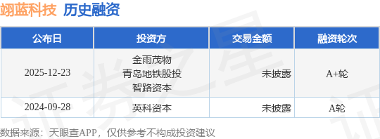 证券之星消息,根据天眼查APP于12月23日公布的信息整理,深圳翊蓝科技有限公司A+轮融资,融资额未披露,参与投资的机构包括金雨茂物,青岛地铁股投,智路资本。