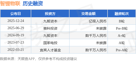 证券之星消息,根据天眼查APP于12月24日公布的信息整理,智锂物联(杭州)科技有限公司B轮融资,融资额亿级人民币,参与投资的机构包括九智资本。