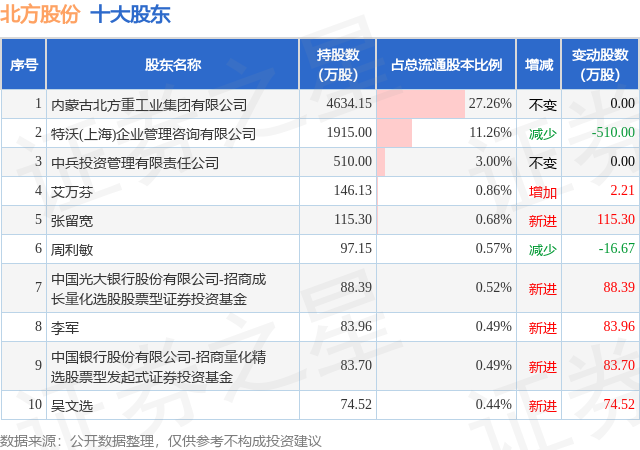 根据北方股份2025年三季报公布的十大股东详情如下: