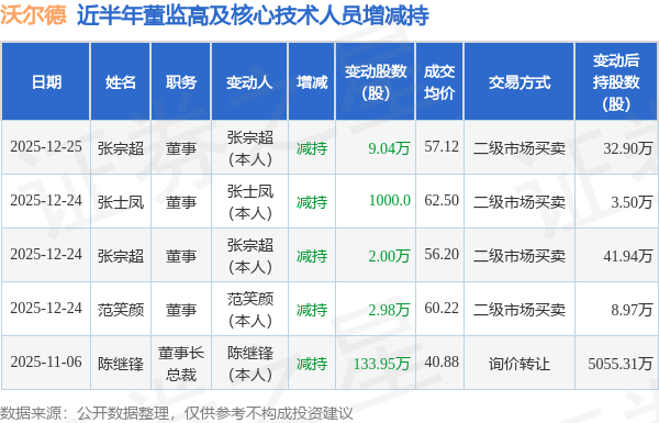 沃尔德近半年内的董监高及核心技术人员增减持详情如下: