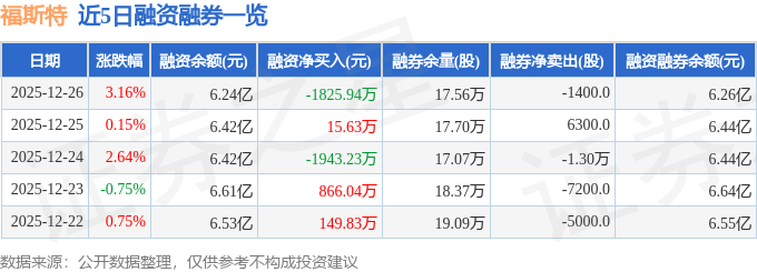 福斯特融资融券信息显示,融资方面,当日融资买入2660.28万元,融资偿还4486.21万元,融资净偿还1825.94万元。融券方面,融券卖出7100.0股,融券偿还8500.0股,融券余量17.56万股,融券余额246.72万元。融资融券余额6.26亿元。