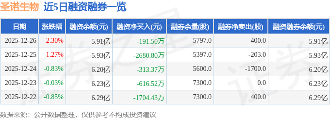 圣诺生物融资融券信息显示,融资方面,当日融资买入7024.89万元,融资偿还7216.39万元,融资净偿还191.5万元。融券方面,融券卖出400.0股,融券偿还0.0股,融券余量5797.0股,融券余额23.7万元。融资融券余额5.91亿元。
