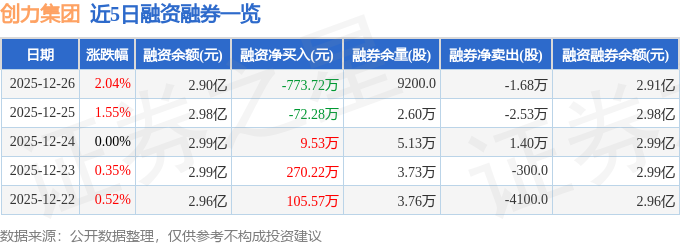 创力集团融资融券信息显示,融资方面,当日融资买入1613.38万元,融资偿还2387.1万元,融资净偿还773.72万元。融券方面,融券卖出0.0股,融券偿还1.68万股,融券余量9200.0股,融券余额5.53万元。融资融券余额2.91亿元。