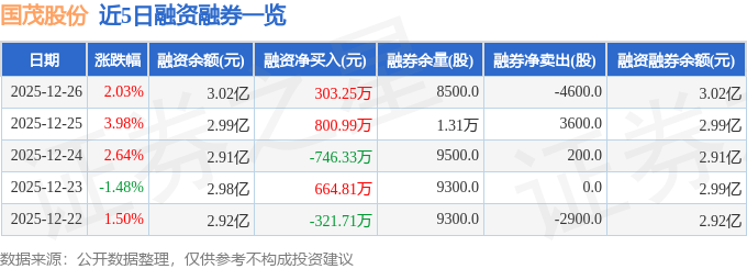 国茂股份融资融券信息显示,融资方面,当日融资买入4119.47万元,融资偿还3816.22万元,融资净买入303.25万元。融券方面,融券卖出0.0股,融券偿还4600.0股,融券余量8500.0股,融券余额15.41万元。融资融券余额3.02亿元。