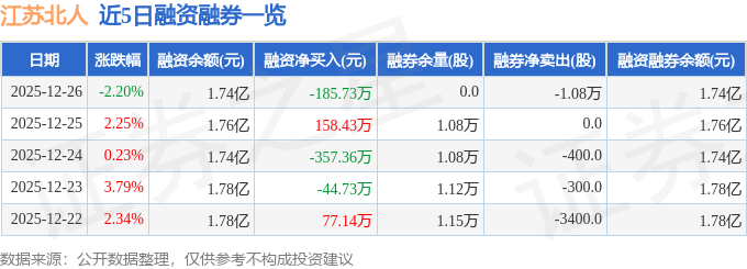 证券之星消息,截至2025年12月26日收盘,江苏北人(688218)报收于22.25元,下跌2.2%,换手率2.45%,成交量2.9万手,成交额6519.2万元。