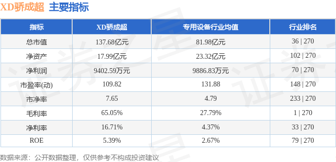 该股主要指标及行业内排名如下: