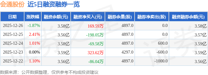 会通股份融资融券信息显示,融资方面,当日融资买入1710.94万元,融资偿还1541.35万元,融资净买入169.59万元。融券方面,融券卖出0.0股,融券偿还0.0股,融券余量4897.0股,融券余额5.92万元。融资融券余额3.58亿元。