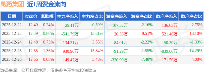 沪深股通持股方面,截止2025年12月26日收盘,昆药集团沪股通持股数为1308.37万股,占流通股比为173.0%。