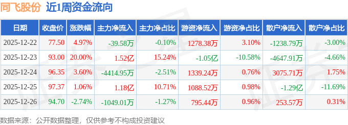 资金流向数据方面,本周同飞股份主力资金合计净流入2.15亿元,游资资金合计净流出6046.75万元,散户资金合计净流出1.55亿元。本周资金流向一览见下表: