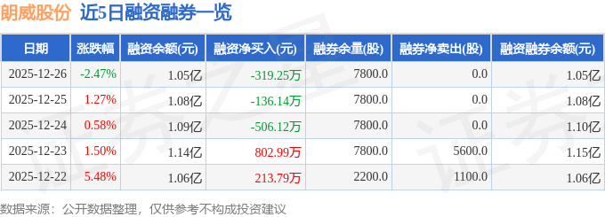 朗威股份融资融券信息显示,融资方面,当日融资买入742.03万元,融资偿还1061.28万元,融资净偿还319.25万元。融券方面,融券卖出0.0股,融券偿还0.0股,融券余量7800.0股,融券余额32.08万元。融资融券余额1.05亿元。