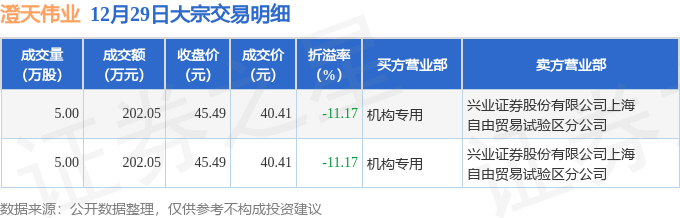 证券之星消息,12月29日澄天伟业发生大宗交易,交易数据如下: