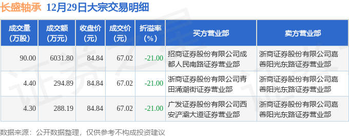 证券之星消息,12月29日长盛轴承发生大宗交易,交易数据如下: