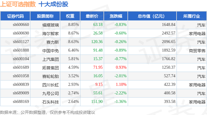 上证可选(000035)指数十大成份股详情如下: