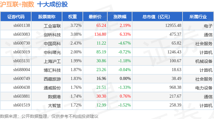 沪互联+(000162)指数十大成份股详情如下: