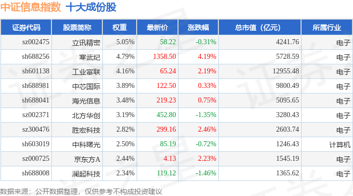 中证信息(000935)指数十大成份股详情如下: