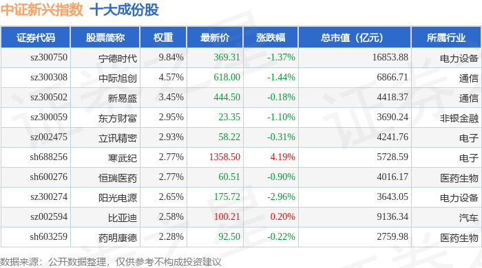 证券之星消息,12月29日,中证新兴(000964)指数报收于11107.2点,跌0.6%,成交2943.65亿元,换手率1.51%。当日该指数成份股中,上涨的有31家,沪电股份以6.91%的涨幅领涨,下跌的有68家,欣旺达以11.39%的跌幅领跌。