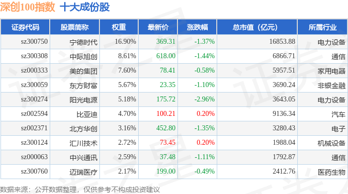 证券之星消息,12月29日,深创100(399088)指数报收于5062.92点,跌0.86%,成交1655.3亿元,换手率2.92%。当日该指数成份股中,上涨的有32家,光威复材以14.86%的涨幅领涨,下跌的有66家,欣旺达以11.39%的跌幅领跌。