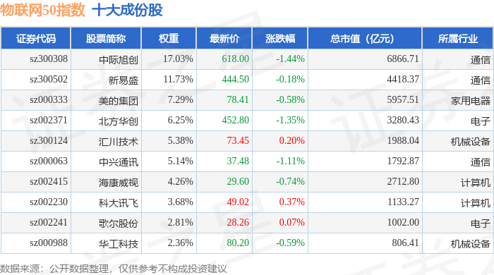 证券之星消息,12月29日,物联网50(399285)指数报收于6280.48点,跌0.31%,成交934.01亿元,换手率2.23%。当日该指数成份股中,上涨的有18家,海格通信以10.04%的涨幅领涨,下跌的有32家,高德红外以2.18%的跌幅领跌。