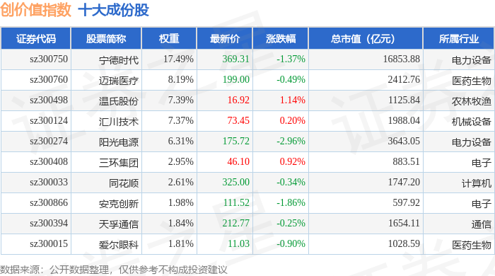 创价值(399295)指数十大成份股详情如下:
