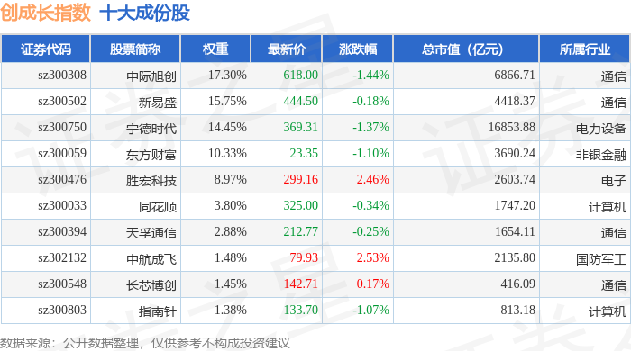 证券之星消息,12月29日,创成长(399296)指数报收于6339.0点,跌0.73%,成交1313.59亿元,换手率2.85%。当日该指数成份股中,上涨的有19家,震裕科技以7.41%的涨幅领涨,下跌的有31家,天华新能以5.73%的跌幅领跌。