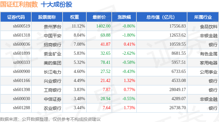 国证红利(399321)指数十大成份股详情如下: