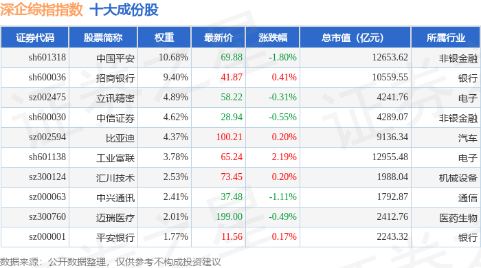 深企综指(399352)指数十大成份股详情如下: