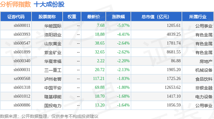 分析师指数(399354)十大成份股详情如下: