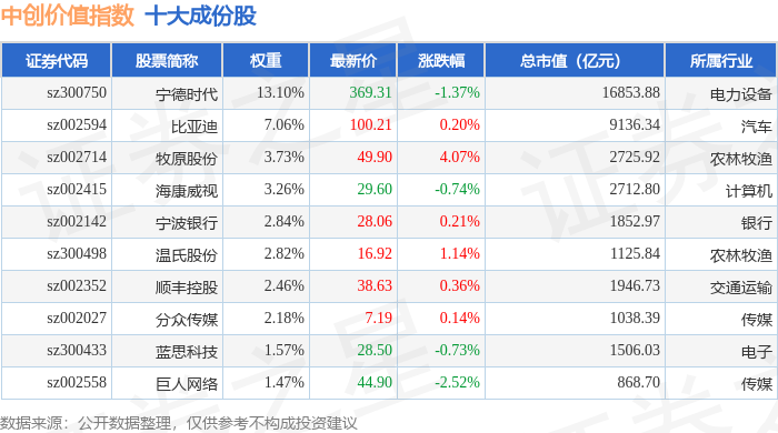 资金流向方面,中创价值(399627)指数成份股当日主力资金净流出合计36.96亿元,游资资金净流入合计6.05亿元,散户资金净流入合计30.91亿元。成份股资金流向详情见下表: