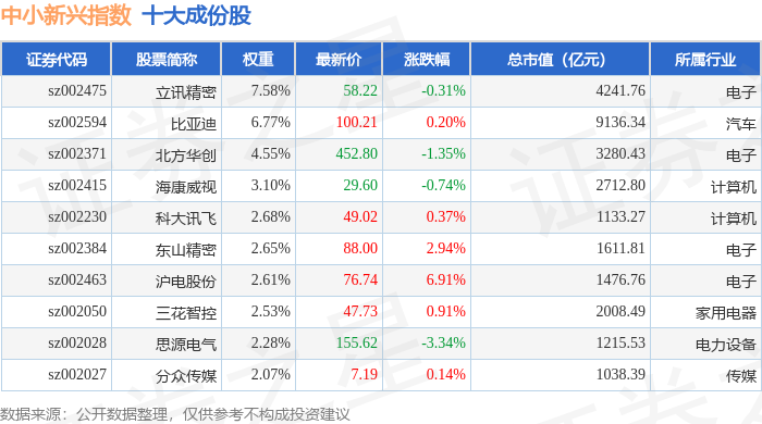 中小新兴(399642)指数十大成份股详情如下: