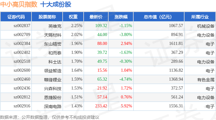 证券之星消息,12月29日,中小高贝(399664)指数报收于1490.45点,涨0.39%,成交1357.0亿元,换手率3.33%。当日该指数成份股中,上涨的有42家,拓维信息以10.0%的涨幅领涨,下跌的有58家,赣锋锂业以4.74%的跌幅领跌。