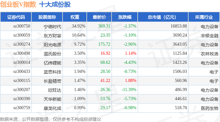 证券之星消息,12月29日,创业板V(399668)指数报收于5198.9点,跌1.4%,成交828.76亿元,换手率2.12%。当日该指数成份股中,上涨的有22家,拉卡拉以12.57%的涨幅领涨,下跌的有77家,欣旺达以11.39%的跌幅领跌。