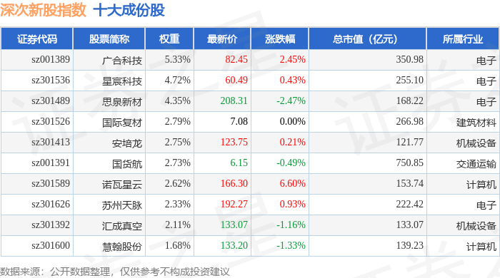 深次新股(399678)指数十大成份股详情如下: