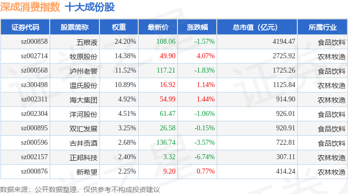 深成消费(399684)指数十大成份股详情如下: