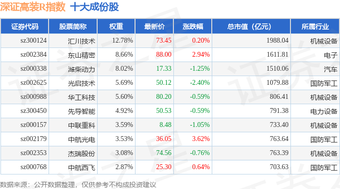 资金流向方面,深证高装R(470037)指数成份股当日主力资金净流出合计6.01亿元,游资资金净流出合计3255.2万元,散户资金净流入合计6.33亿元。成份股资金流向详情见下表:
