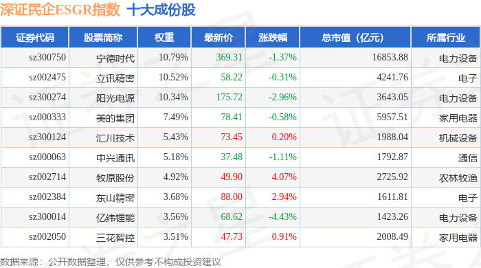 深证民企ESGR(470056)指数十大成份股详情如下:
