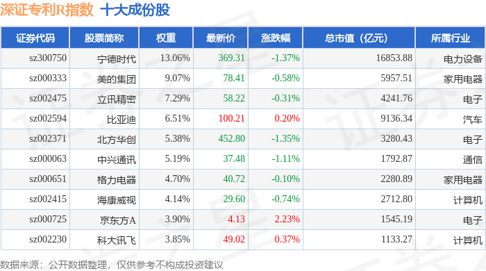 深证专利R(470067)指数十大成份股详情如下: