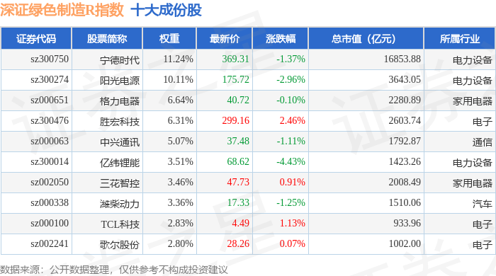 深证绿色制造R(470069)指数十大成份股详情如下: