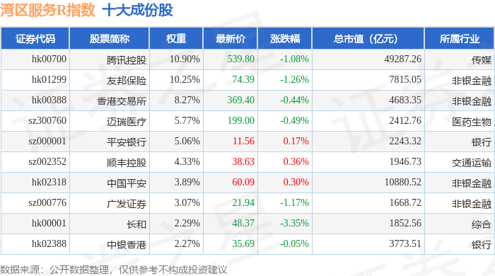 湾区服务R(480011)指数十大成份股详情如下: