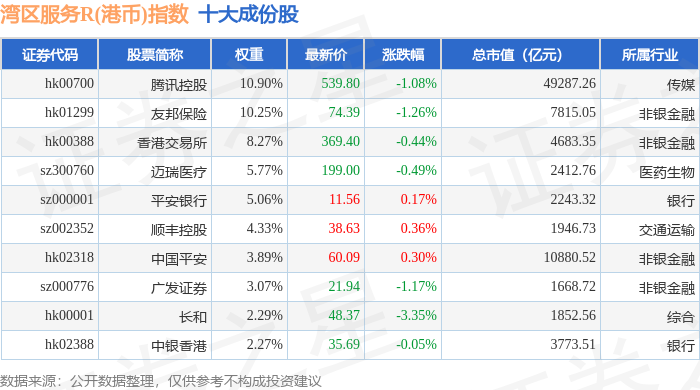 湾区服务R(港币)(480012)指数十大成份股详情如下: