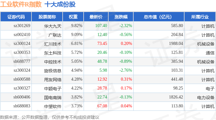 证券之星消息,12月29日,工业软件R(480034)指数报收于3475.47点,跌0.42%,成交232.53亿元,换手率2.05%。当日该指数成份股中,上涨的有21家,航天宏图以9.35%的涨幅领涨,下跌的有28家,科瑞技术以4.84%的跌幅领跌。