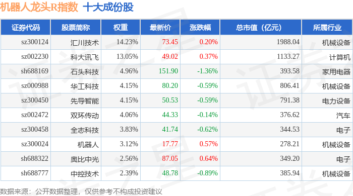 资金流向方面,机器人龙头R(480071)指数成份股当日主力资金净流出合计7.31亿元,游资资金净流入合计7262.93万元,散户资金净流入合计6.58亿元。成份股资金流向详情见下表: