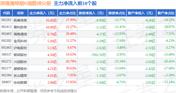 资金流向方面,深港通综指R(483005)指数成份股当日主力资金净流出合计353.16亿元,游资资金净流入合计36.32亿元,散户资金净流入合计316.84亿元。成份股资金流向详情见下表: