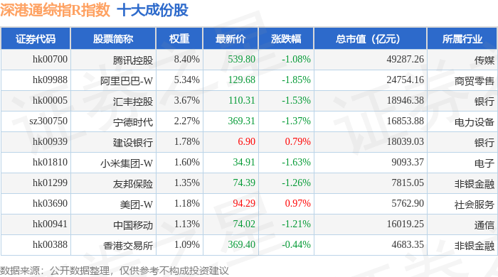 证券之星消息,12月29日,深港通综指R(483005)指数报收于8028.74点,跌0.62%,成交11906.99亿元,换手率1.45%。当日该指数成份股中,上涨的有790家,微创机器人-B以25.85%的涨幅领涨,下跌的有1439家,漱玉平民以17.91%的跌幅领跌。
