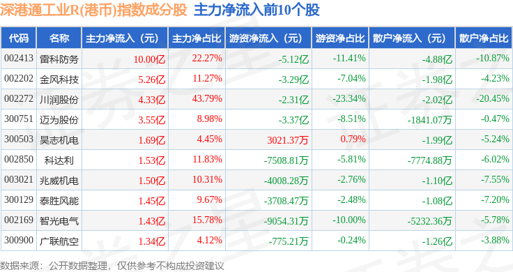 资金流向方面,深港通工业R(港币)(483018)指数成份股当日主力资金净流出合计101.44亿元,游资资金净流入合计5.32亿元,散户资金净流入合计96.12亿元。成份股资金流向详情见下表: